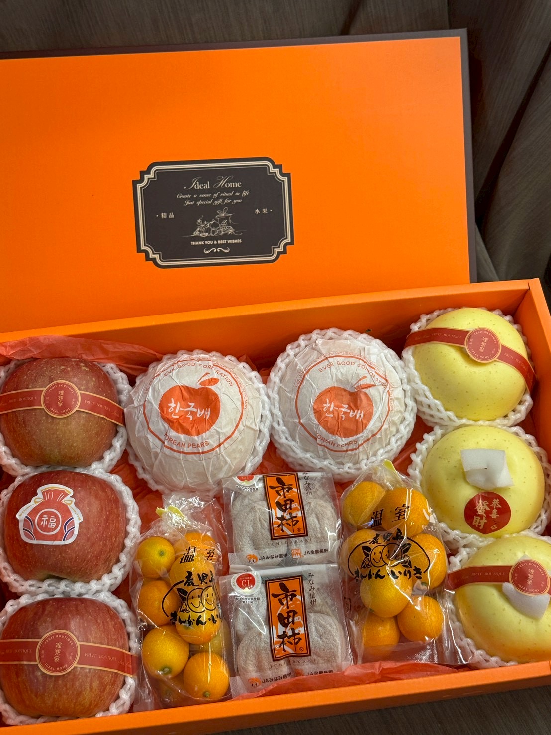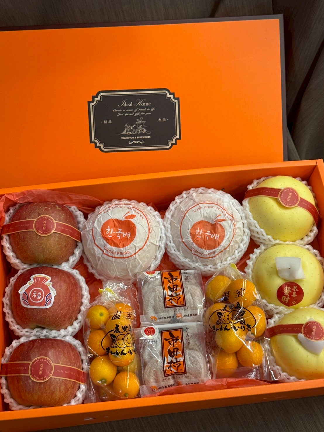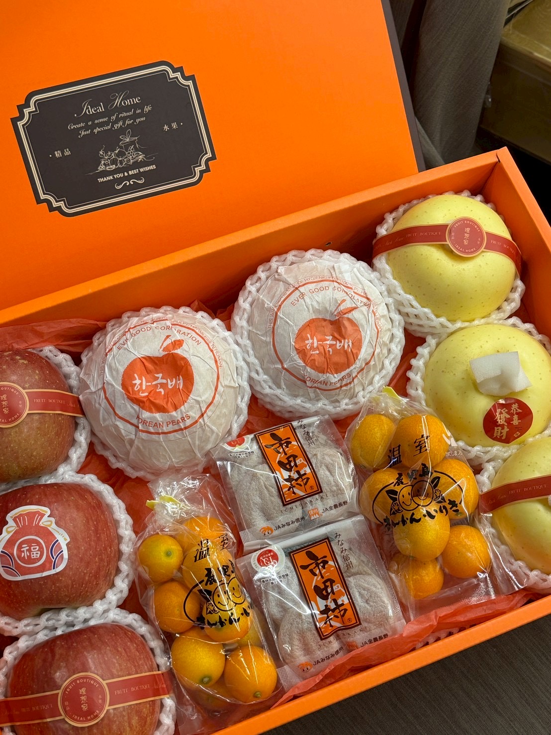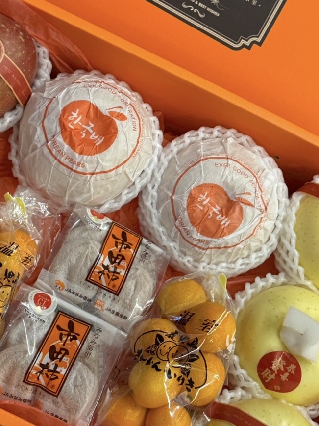 韓國梨+日本蜜富士+鹿兒島金桔+市田柿柿干+精緻包裝設計